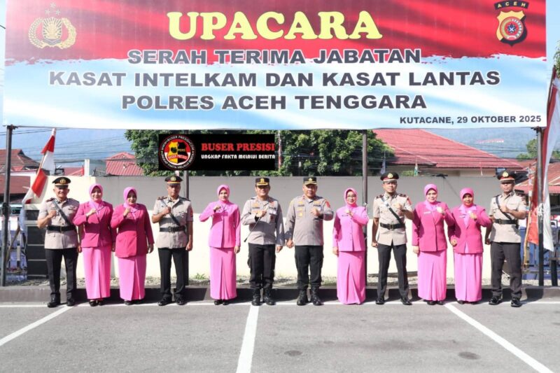 Kutacane 29 Oktober 2025 .Aceh Tenggara Provinsi Aceh,Dalam rangka penyegaran organisasi dan pembinaan karier personel, Polres Aceh Tenggara melaksanakan Upacara Serah Terima Jabatan (Sertijab) Kasat Intelkam dan Kasat Lantas pada Rabu (29/10/2025) pukul 08.00 WIB, bertempat di Lapangan Apel Mapolres Aceh Tenggara.